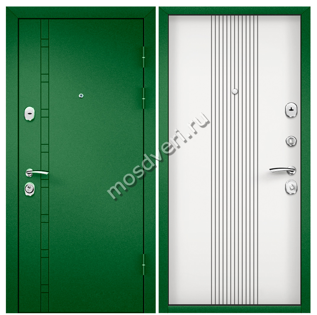 Зеленая входная дверь в квартиру ZVD-19 — совмещает стильный внешний вид и превосходные защитные характеристики.